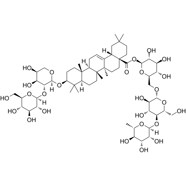 Ciwujianoside A1, geĂ¯dentificeerd met CAS-nummer 120768-65-2, is een triterpeensaponine, afkomstig uit planten zoals Acanthopanax senticosus (Siberische Ginseng). Deze natuurlijke verbinding heeft een complexe moleculaire structuur die het tot een interessant onderzoeksgebied maakt.