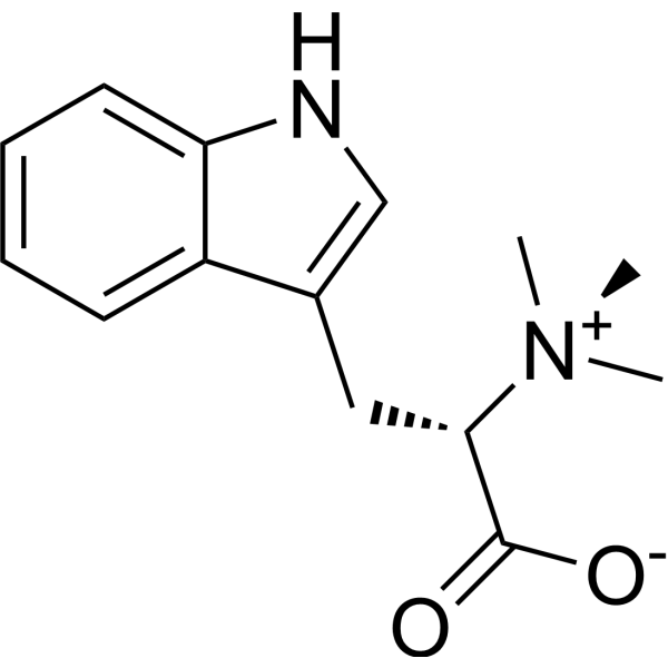 Hypaphorine, met CAS-nummer 487-58-1, is een natuurlijk voorkomend tryptofaan-derivaat dat behoort tot de indoolalkaloĂ¯den. Deze fascinerende verbinding, ook bekend onder de chemische formule C14H18N2O2, wordt voornamelijk aangetroffen in bepaalde plantensoorten, waaronder die van het geslacht Erythrina. De structurele complexiteit van Hypaphorine maakt het een interessant studieobject binnen de organische chemie en farmacologie. Het molecuul bevat een karakteristieke indoolring, gekoppeld aan een N,N-dimethylaminozuurketen, wat bijdraagt aan zijn unieke bioactiviteit.