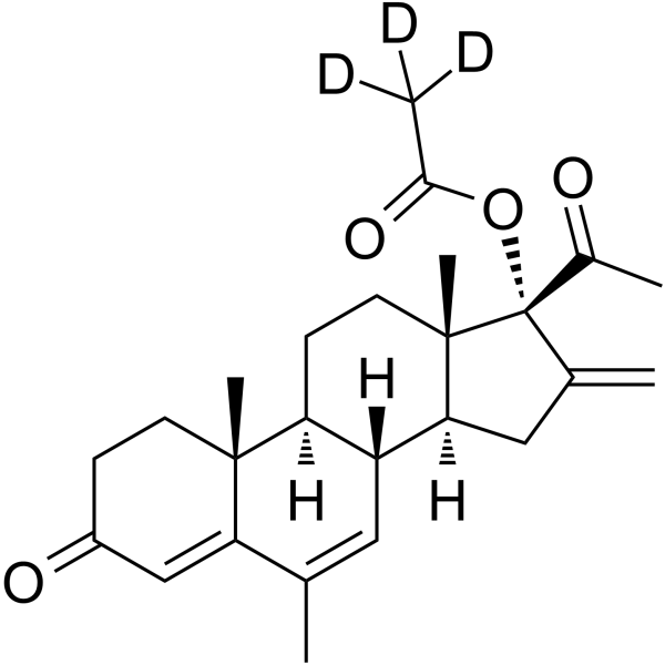 Melengestrol acetaat-d3 is een synthetisch progestageen, een derivaat van melengestrolacetaat, waarin drie waterstofatomen zijn vervangen door deuteriumatomen. Deze isotopische label is van onschatbare waarde in massaspectrometrische toepassingen, waarbij het dient als een interne standaard of tracer voor het kwantificeren van de niet-gelabelde tegenhanger. Bovendien maakt de specifieke label het mogelijk om het metabolisme en de farmacokinetiek van melengestrolacetaat nauwkeurig te volgen zonder de chemische eigenschappen significant te beĂ¯nvloeden.
