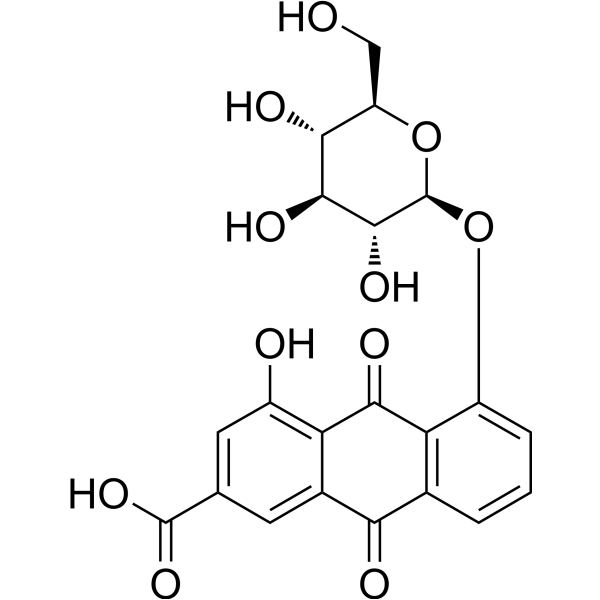 Rhein 8-Glucoside (CAS: 34298-86-7) is een fascinerende organische verbinding, gekenmerkt door zijn chemische formule C21H18O11. Dit glucoside is een derivaat van rheĂ¯ne, een natuurlijk voorkomende anthrachinon. De aanwezigheid van de glucosedeel maakt het wateroplosbaar en draagt bij aan de biologische activiteit. Typisch wordt Rhein 8-Glucoside geĂ¯dentificeerd aan de hand van zijn kenmerkende moleculaire structuur en spectroscopische eigenschappen.