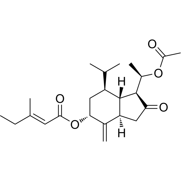Tussilagone (CAS-nummer: 104012-37-5) is een natuurlijk voorkomende sesquiterpenoĂ¯de, primair geĂ¯soleerd uit planten van het geslacht Tussilago, met name Tussilago farfara, ook wel bekend als hoefblad. Chemisch gezien heeft het de molecuulformule C18H20O6 en een molecuulgewicht van 332,35 g/mol. Deze verbinding presenteert zich als een witte tot gebroken witte vaste stof, afhankelijk van de zuiverheidsgraad. Bovendien wordt het gekenmerkt door zijn complexe structuur met meerdere chirale centra.