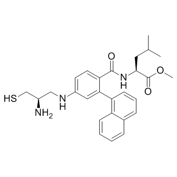 GGTI298, ook bekend onder het CAS-nummer 180977-44-0, is een selectieve en krachtige remmer van geranylgeranyltransferase I (GGTase I). Deze enzymatische remming speelt een sleutelrol in verschillende cellulaire processen, met name in de post-translationele modificatie van eiwitten zoals de Ras-superfamilie van kleine GTPasen. Moleculair gezien heeft GGTI298 de chemische formule C25H26N2O en een molecuulgewicht van 370,49 g/mol. Het is een complex organisch molecuul dat nauwkeurig is ontworpen om zijn specifieke doelwit te moduleren.