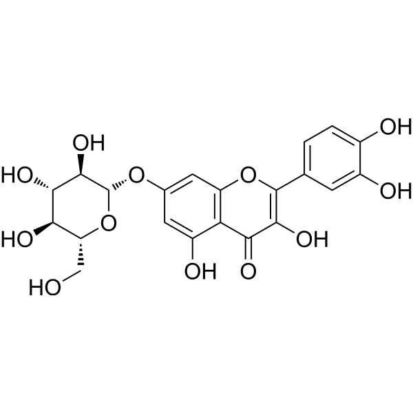 Quercimeritrin is een natuurlijk voorkomende flavonoĂ¯de glycoside. Het wordt aangetroffen in verschillende plantensoorten, waaronder de bladeren van de theeplant en in bepaalde Eucalyptus-soorten. Deze specifieke verbinding trekt de aandacht van wetenschappers vanwege de unieke chemische structuur en potentiĂ«le biologische activiteiten. Vanwege zijn botanische oorsprong is het een populair onderwerp binnen fytochemisch onderzoek. De rol van flavonoĂ¯den in de natuur en hun interactie met biologische systemen blijft een fascinerend studiegebied.