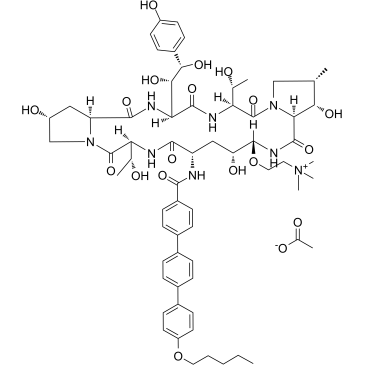 Rezafungine Acetaat is een geavanceerd echinocandine-antimycoticum, bekend om zijn potentie en brede spectrum activiteit tegen diverse schimmelinfecties. Chemisch gezien is het een prodrug van Rezafungine, ontworpen voor verbeterde farmacokinetische eigenschappen. Dit maakt het een fascinerend onderwerp voor farmacologisch onderzoek.